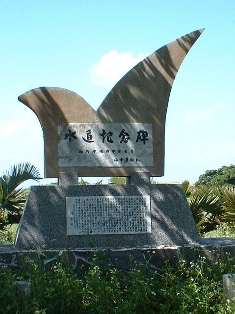 1975年、西表島からの海底送水を記念して建てられた水道記念碑。