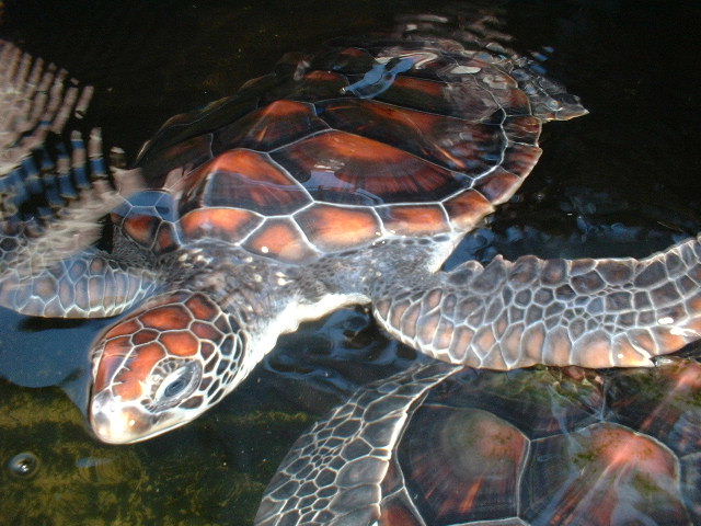 屋外では生きているウミガメが見学できる。